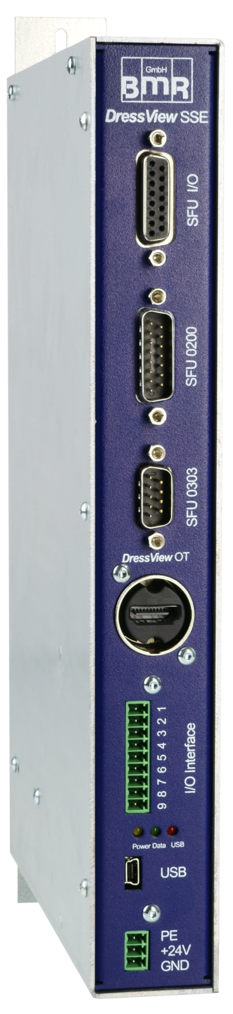 Das PMU lässt sich perfekt in ein Bedienpult eines Fertigungszentrums integrieren. Zugehörig zum OperatingTerminal ist das DressView® SSE Schaltschrankgerät. Dieses stellt die Spannungsversorgung sicher und sämtliche Ein- und Ausgänge zur Verfügung. Zusätzlich bietet es eine USB-Schnittstelle zum benötigten BMR-Umformer.